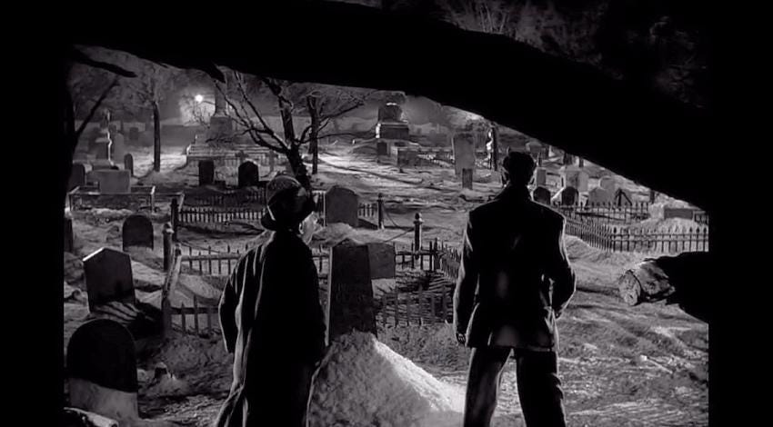 Mr. Potter would use the ill-gotten money from uncle Billy's mistake to bankrupt George, send the authorities after him, and drive him to suicide - all to keep his grip on power. And during the sequence when George sees what life would be like without him, we see what Mr. Potter would build with his power. Not just a Potter's Field, but an entire Pottersville. A place of exploitation and immorality. A grave.
